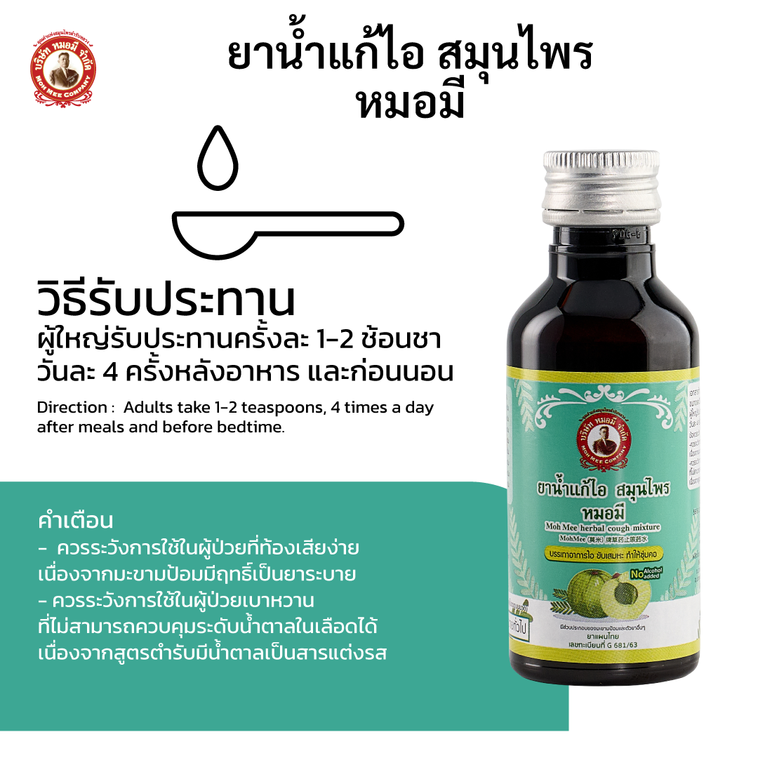 วิธีรับประทาน: ผู้ใหญ่รับประทานครั้งละ 1-2 ช้อนชา วันละ 4 ครั้ง หลังอาหารและก่อนนอน